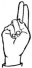 На ћирилици написано ВЕЉКО УГРИЦА састоји се из 11 слова [?]. Исписано ћириличном једноручном азбуком за глувонеме:
